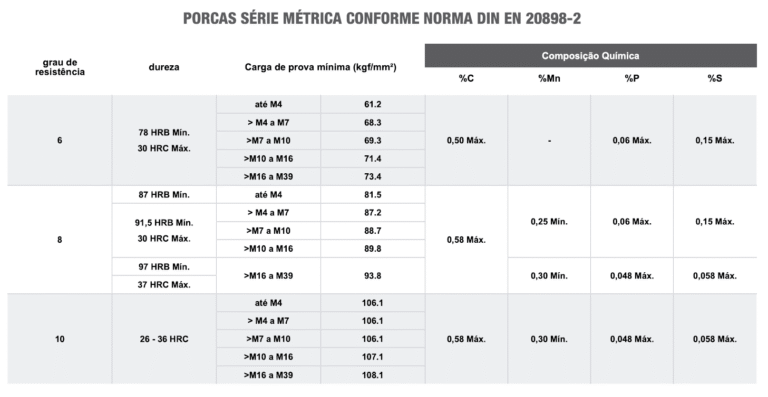 PORCAS SÉRIE MÉTRICA CONFORME NORMA DIN EN 20898-2